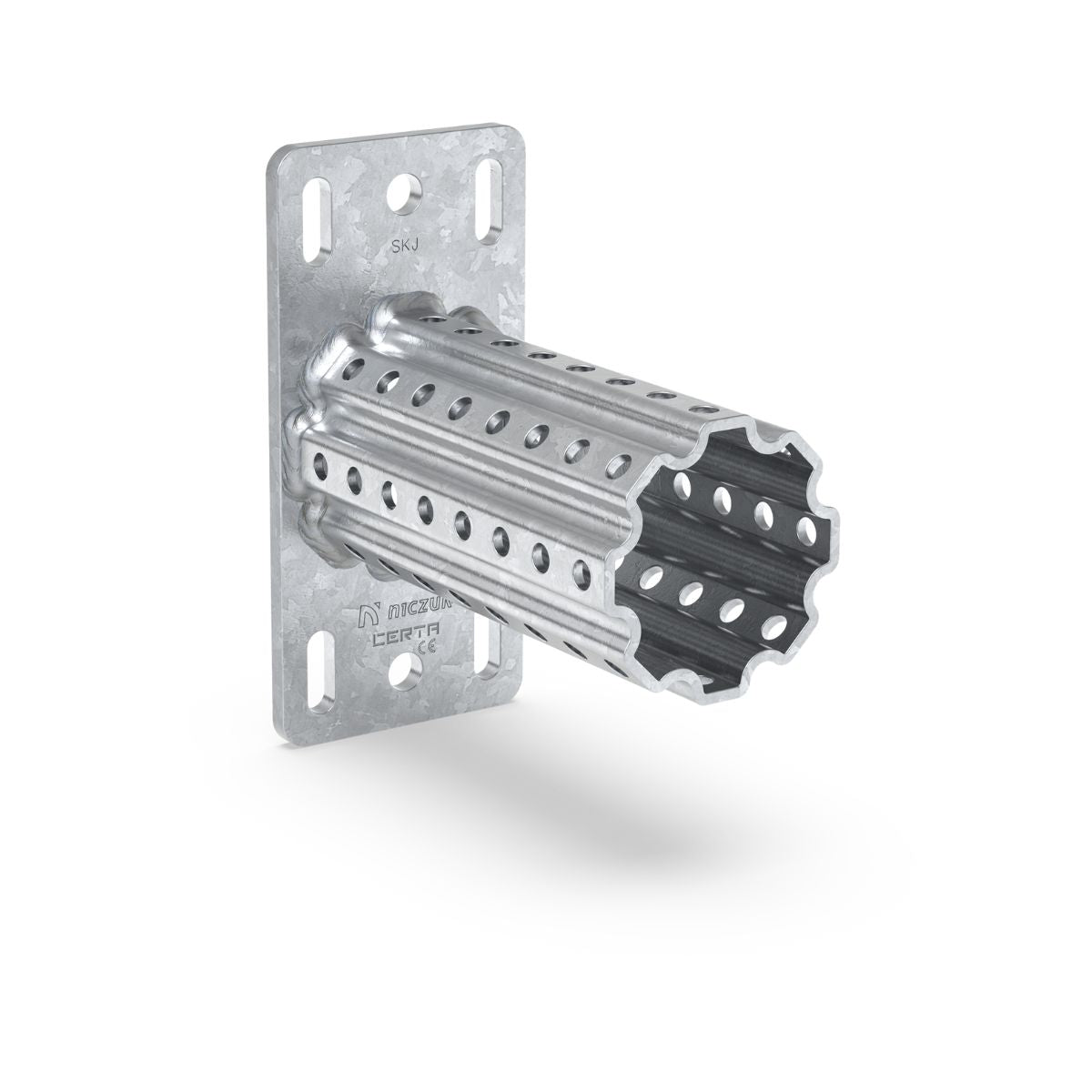 CERTA KJ fodflange til montering af KJ montageskinne på gulv, væg, loft eller en anden CERTA KJ konstruktion. Til indendørs og udendørs brug.