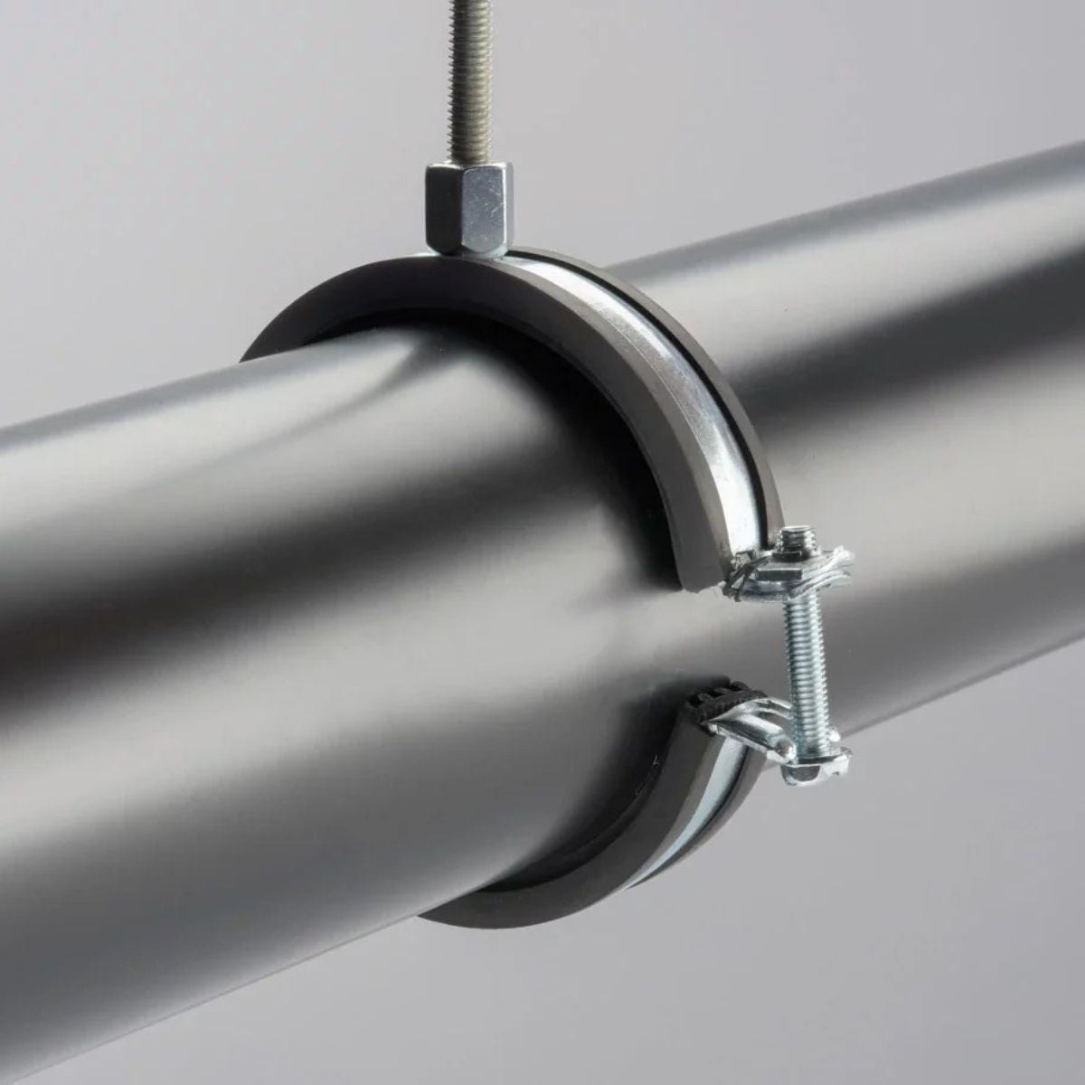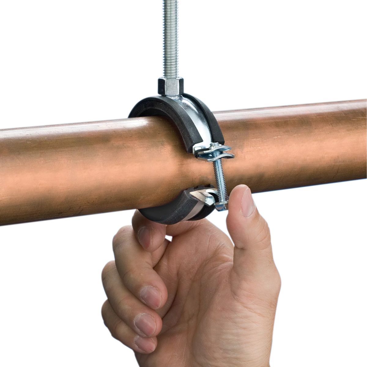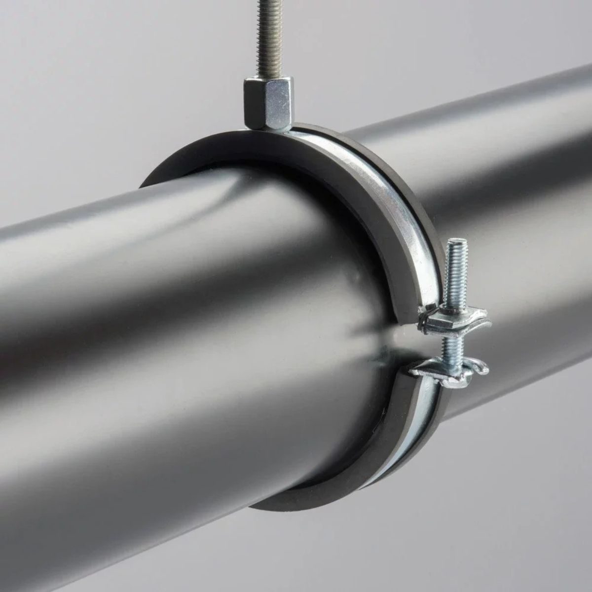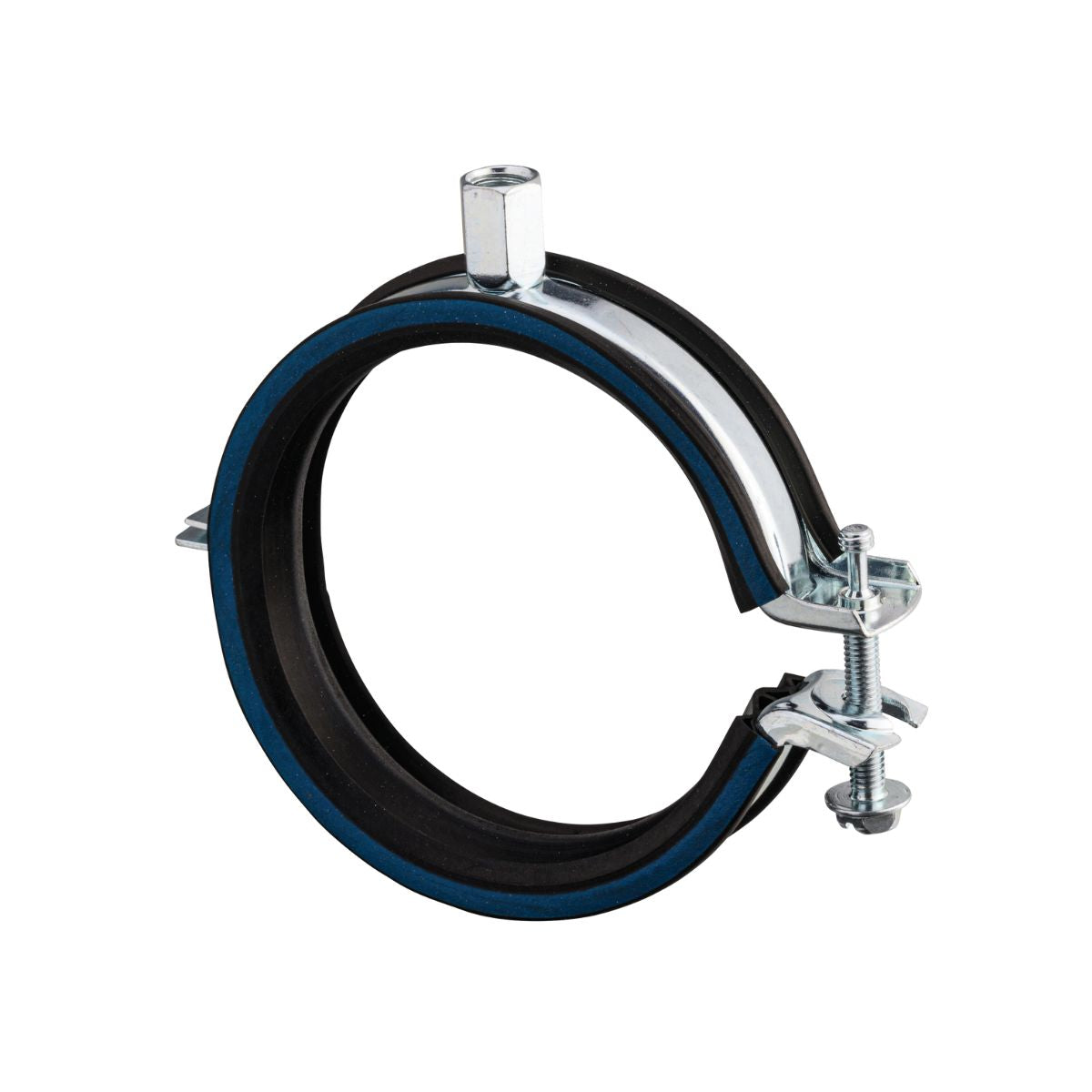 Elforzinket rørbøjle, M8/M10, fra Ø12-114 mm, m/gummi og lukning m/1 skrue.